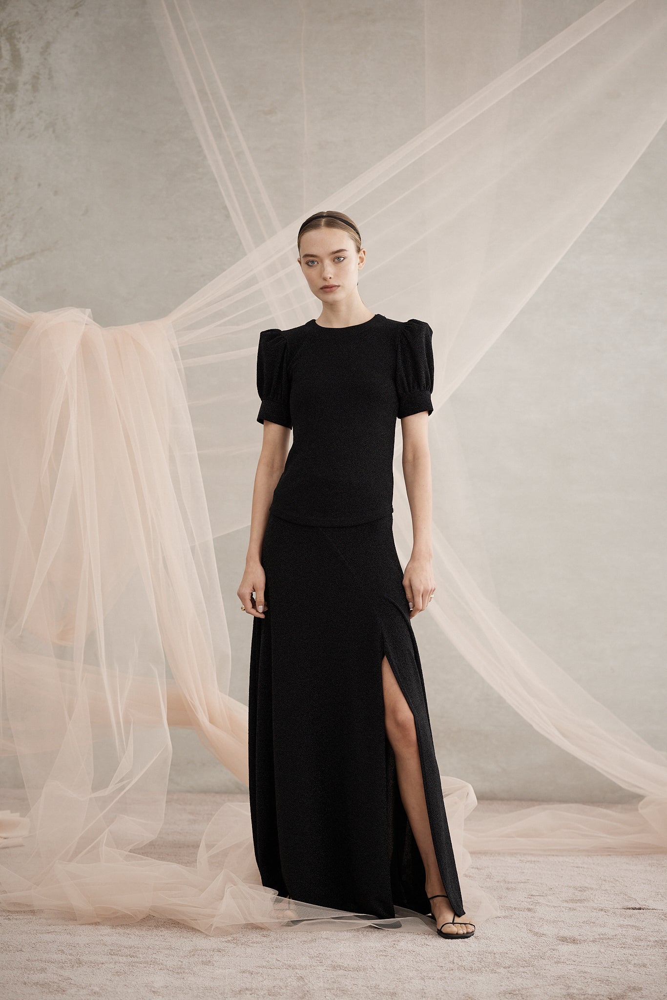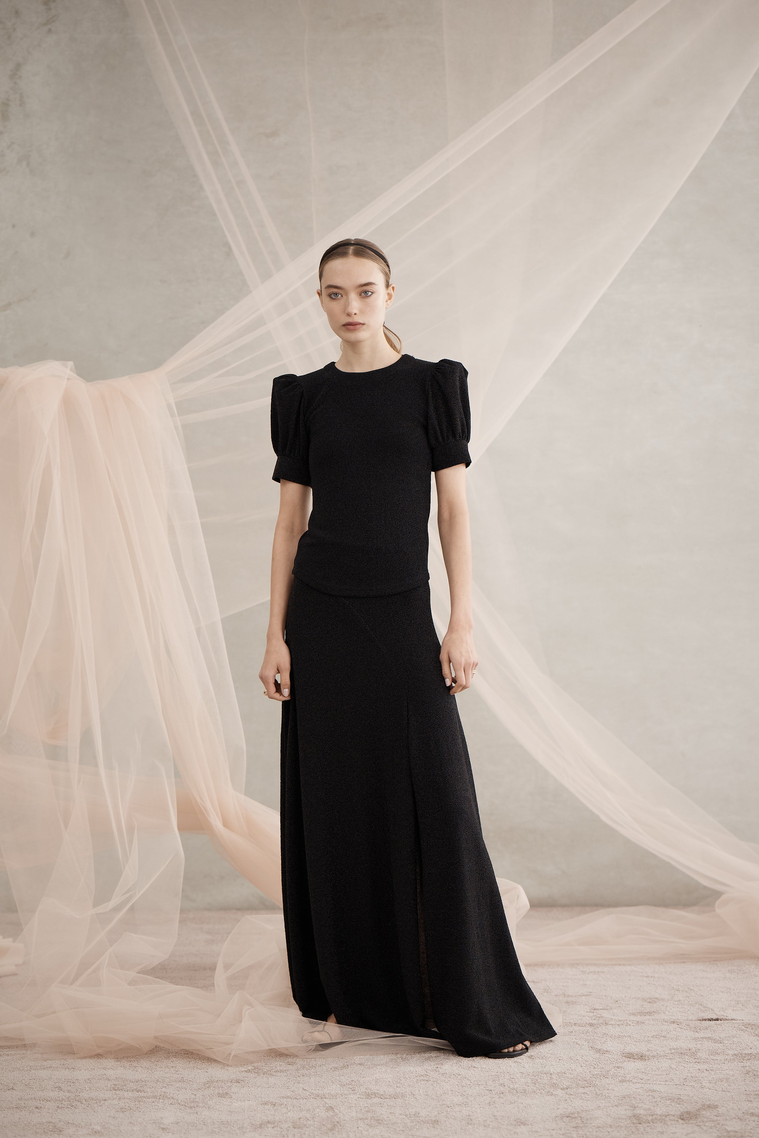 Como Puff Sleeve Top | Black Metallic Knit