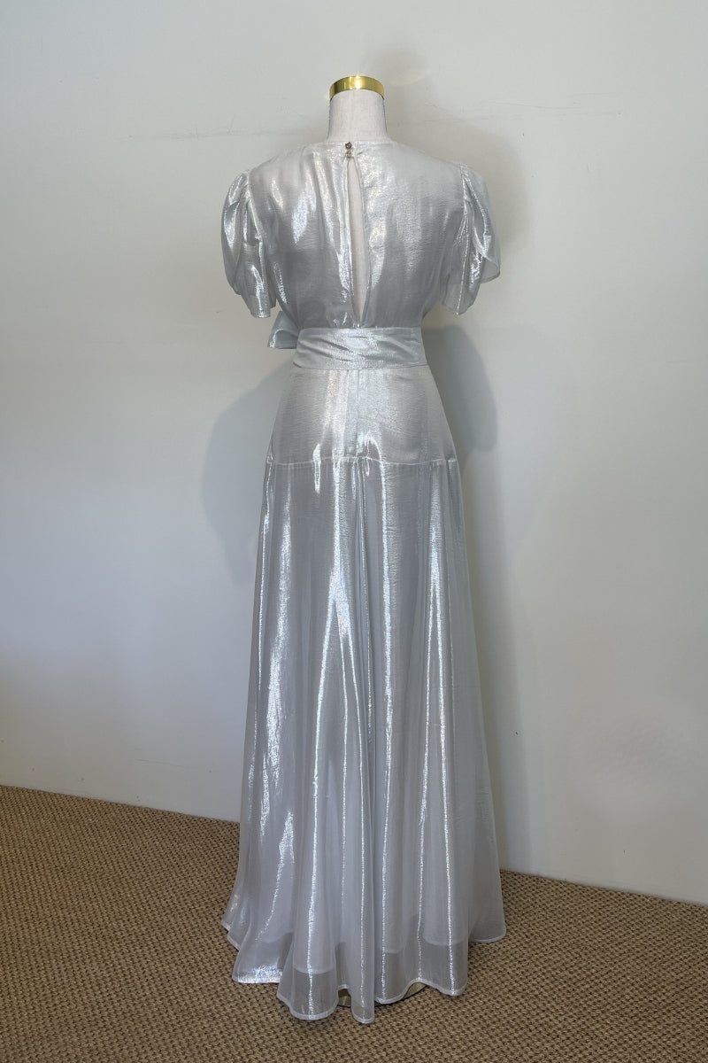 Isabella Silk Maxi Dress | Silver Foil
