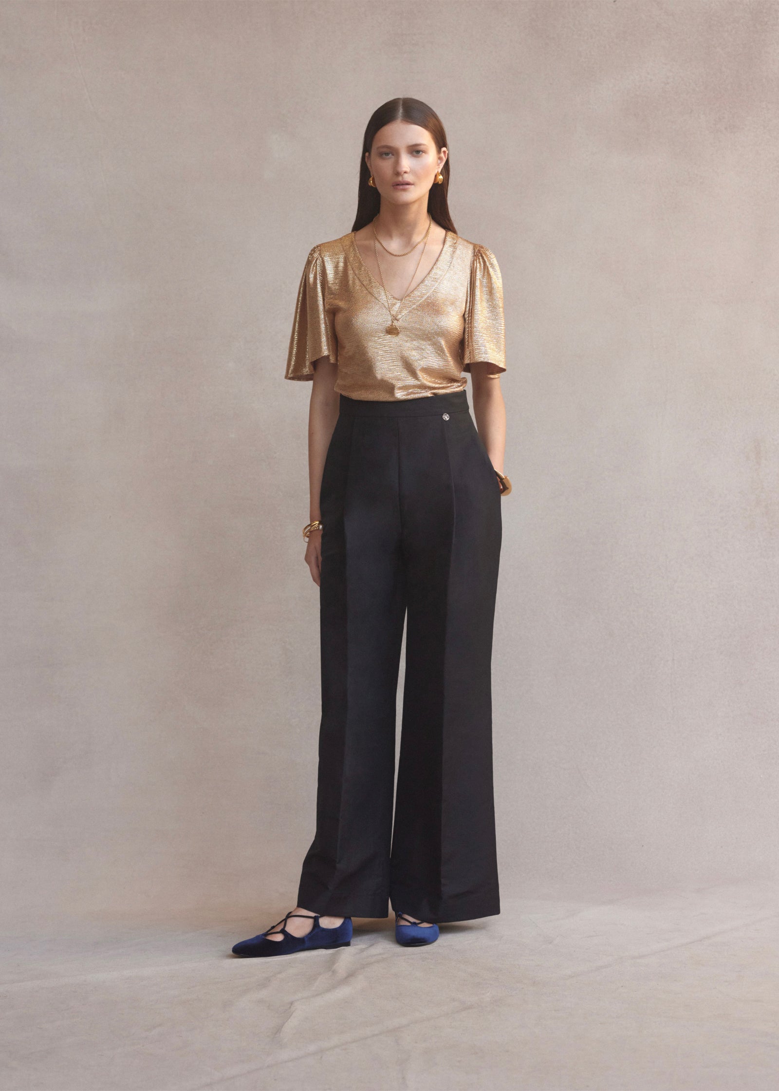 Farfalla V-neck Top | Gold Metallic