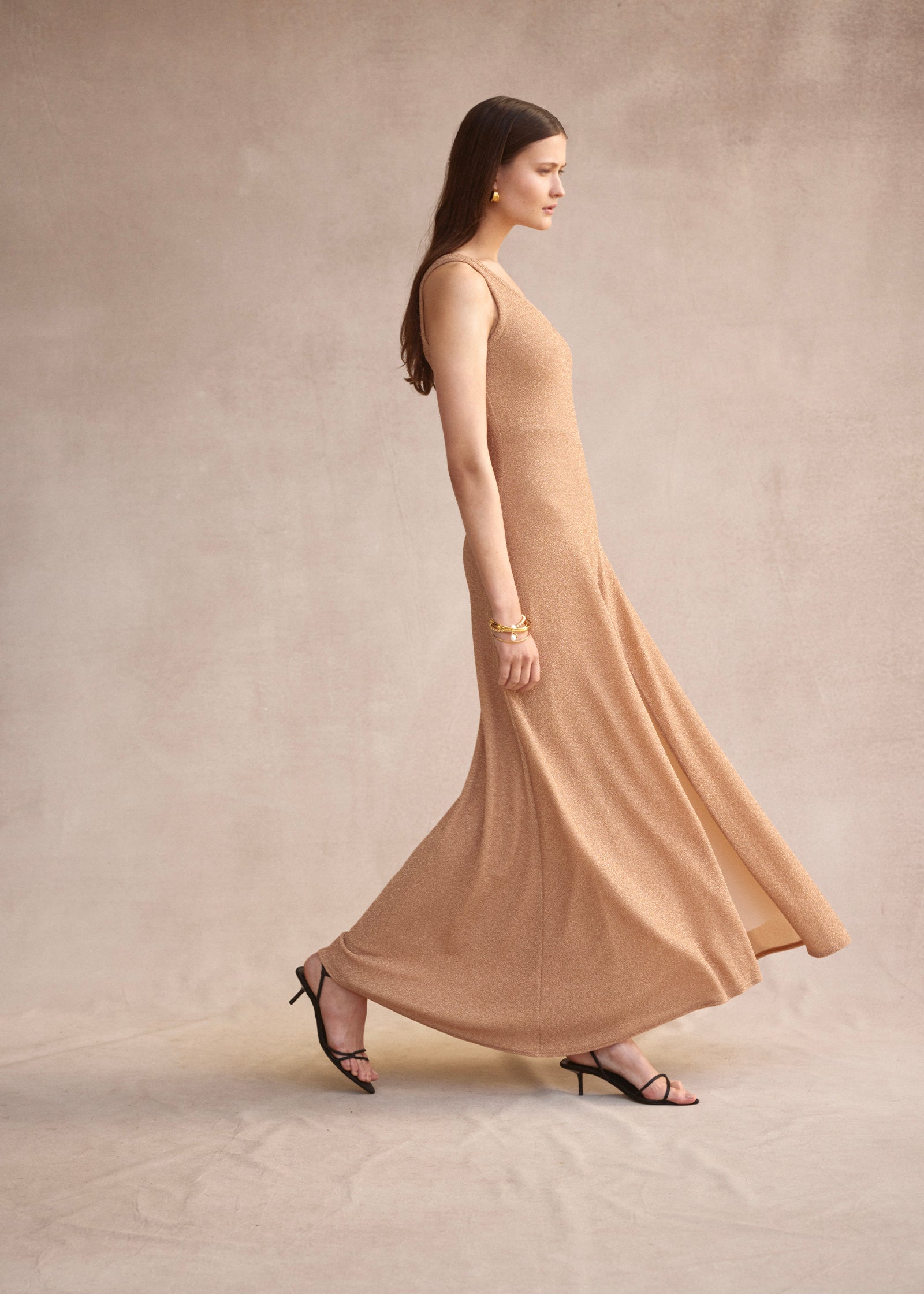 • The soft lamè fabrication is light catching and stretchy - garment fits true to size