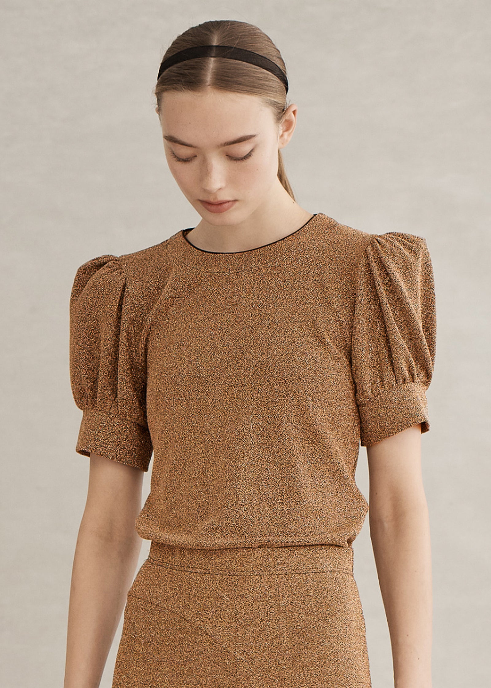 Como Puff Sleeve Top | Moet Gold Metallic Knit