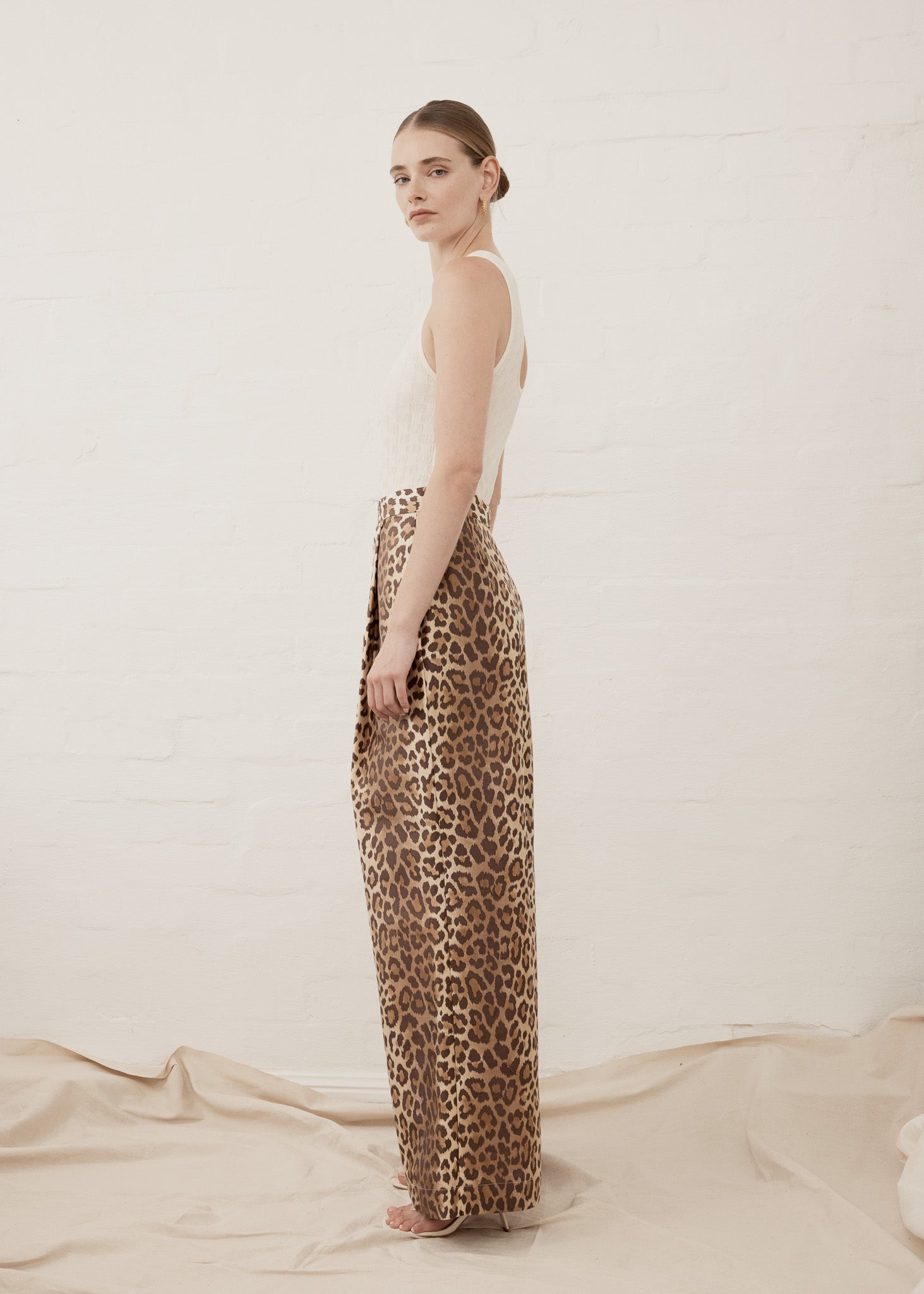 The Riviera Pant combines in Leopard is made in a luxurious silk blend fabrication. The style features a high waist and wide leg silhouette that offers a flattering fit that elongates the legs.