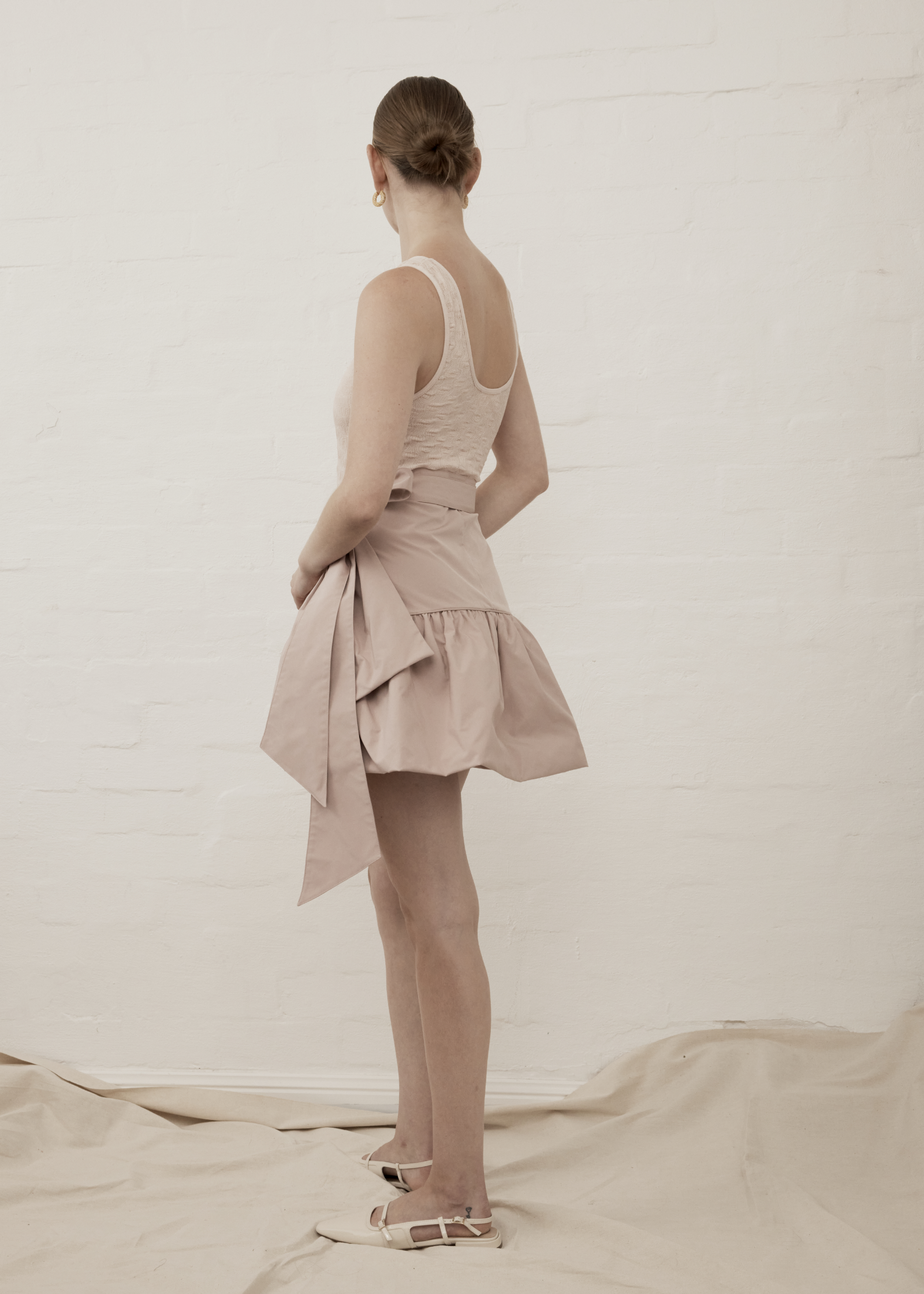 The Lido Mini Wrap Skirt is a stylish high-waisted design that blends elegance with a touch of flair. This wrap-style skirt features a distinctive double frill and a mini-length hemline. Made from 100% polyester taffeta with a matte finish, it wraps easily around the waist and ties at the side for a flattering fit. Versatile and chic, this skirt is suitable for a variety of events and occasions.
