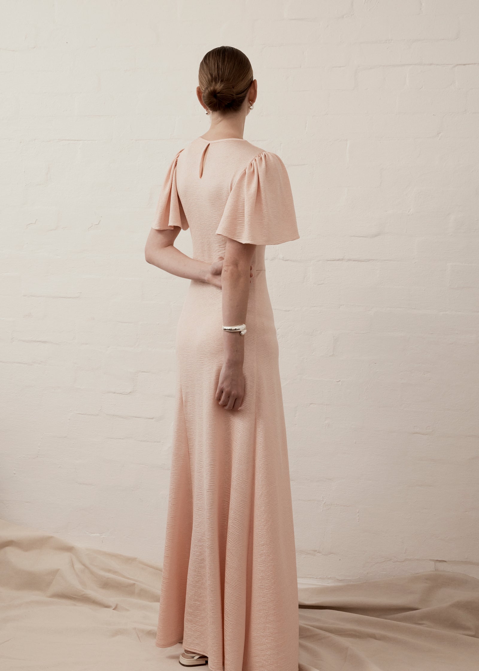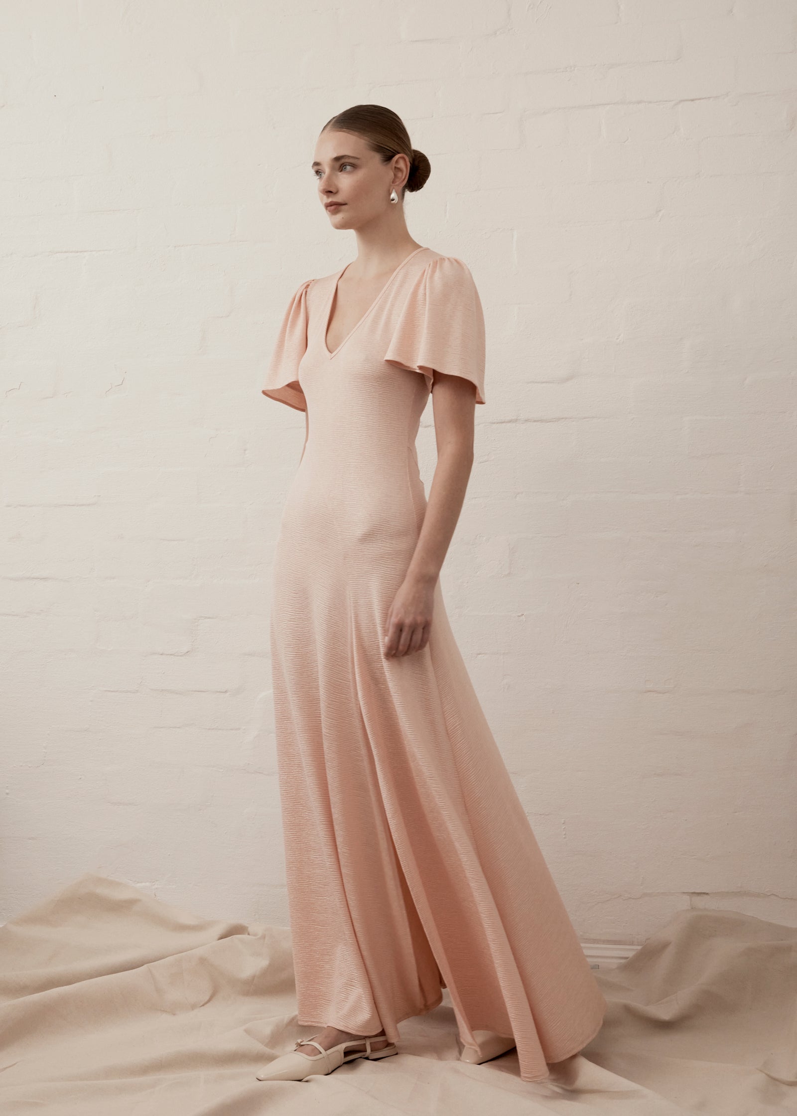 V-neck Fluted Como Maxi Dress | Powder Pink