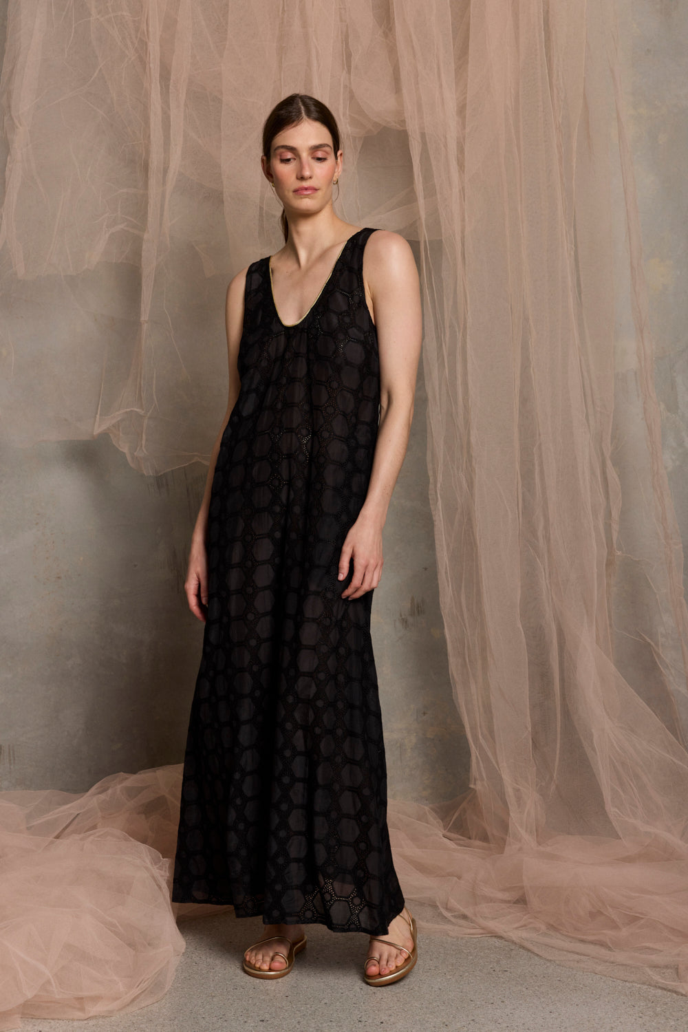 Viva Sleeveless Maxi Dress | Gold Foil