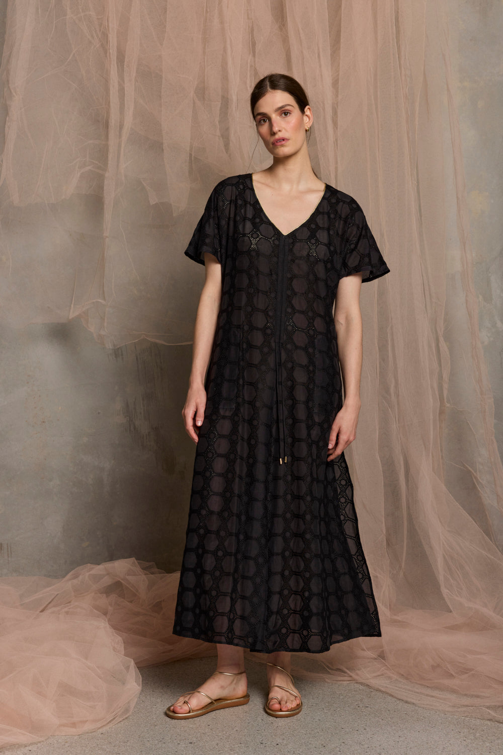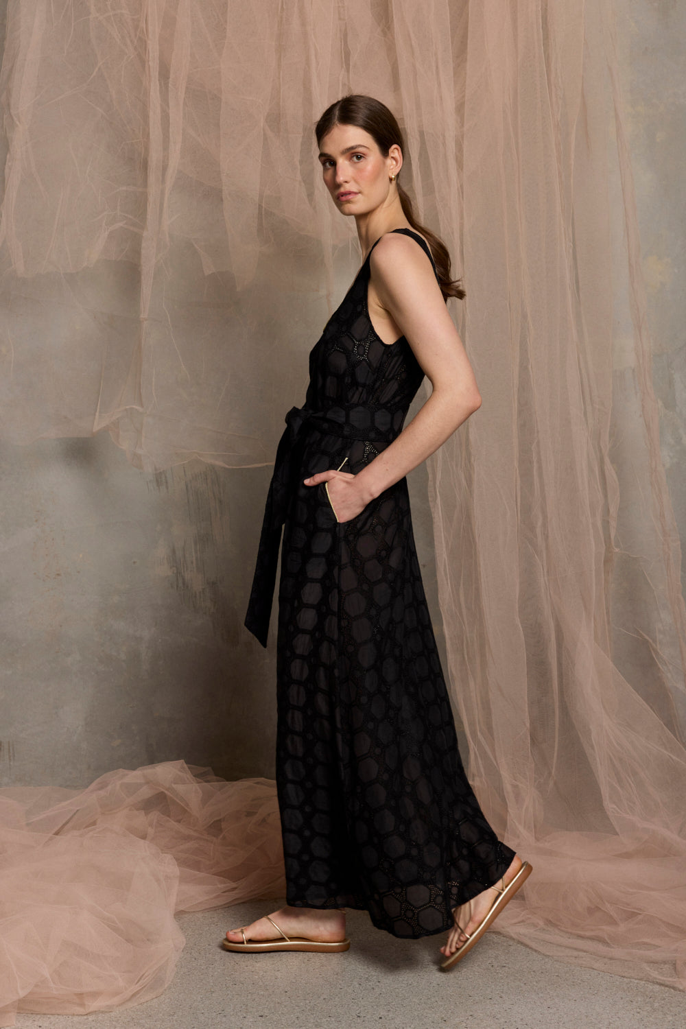 Milazzo Embroidered Belted Maxi Dress | Black