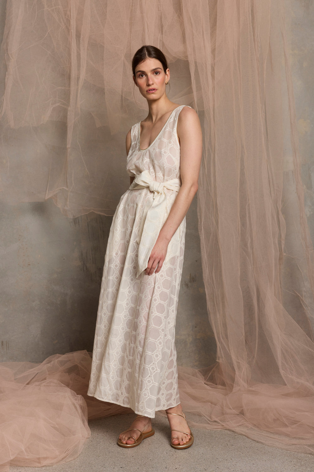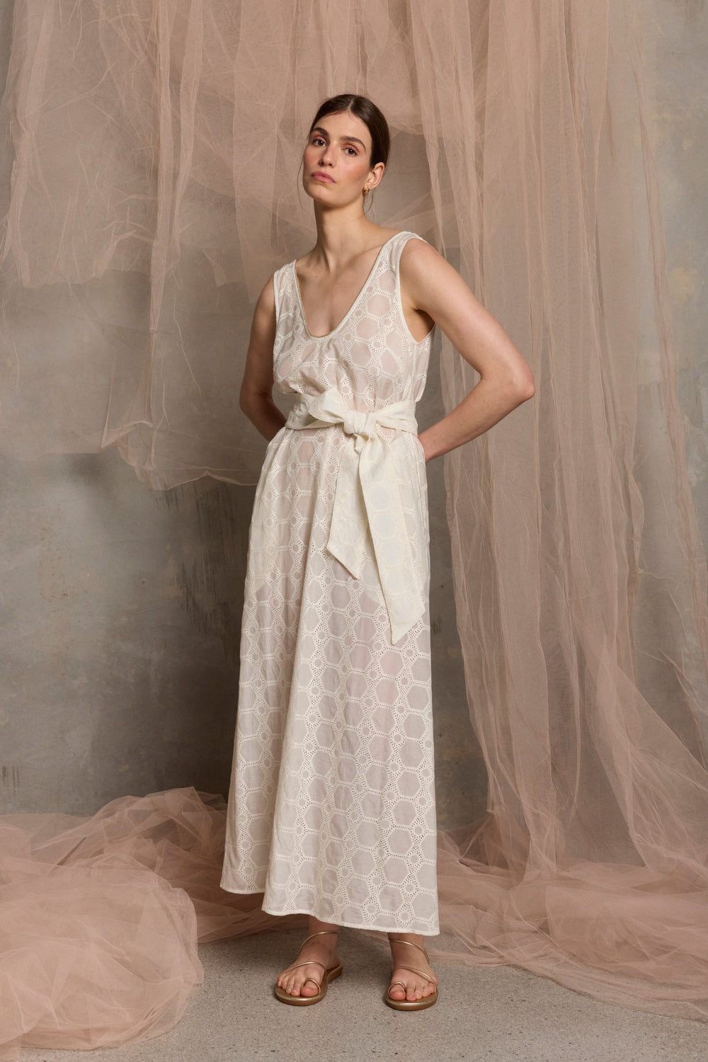 Milazzo Embroidered Belted Maxi Dress | White