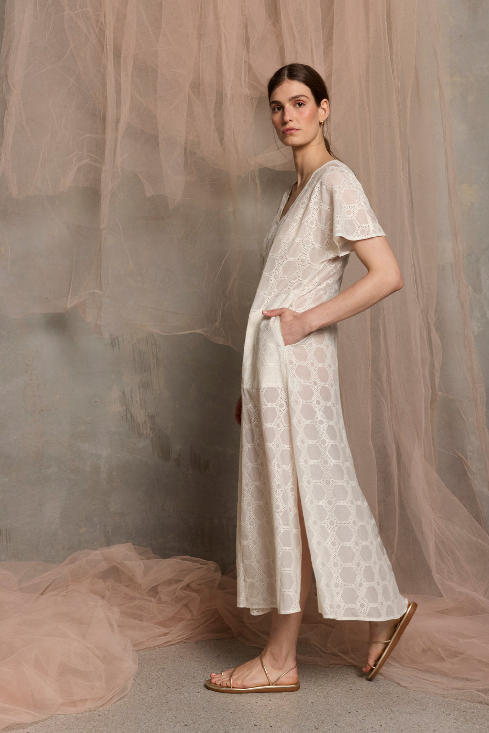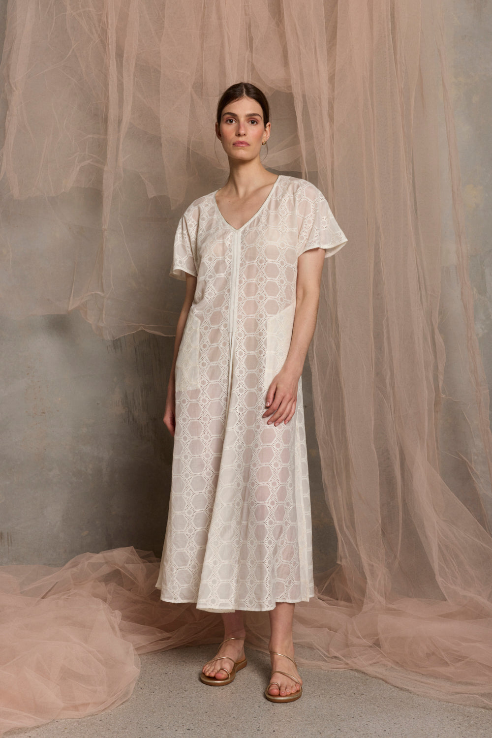 Isabella Silk Cotton Maxi Dress | White Embroidery