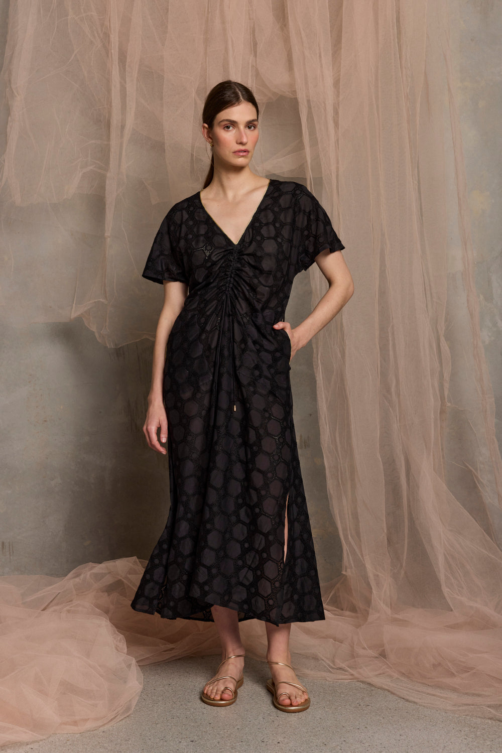 Ionian Midi Drawstring Dress | Black