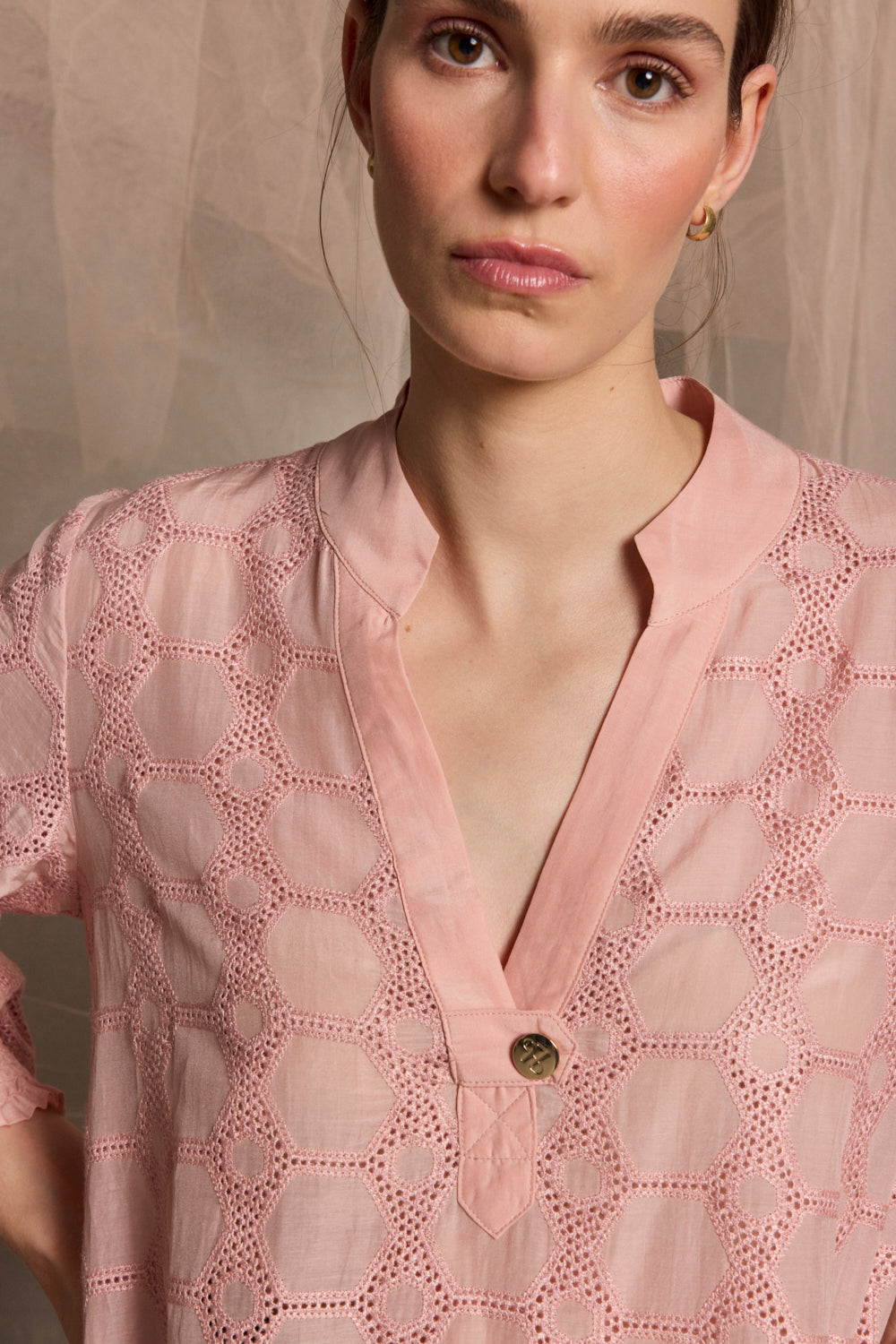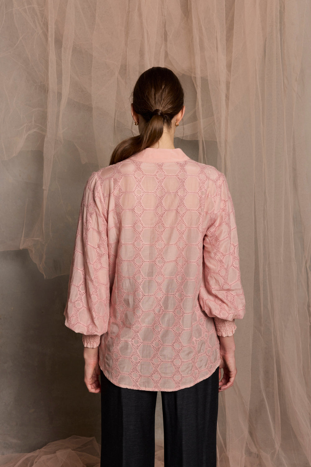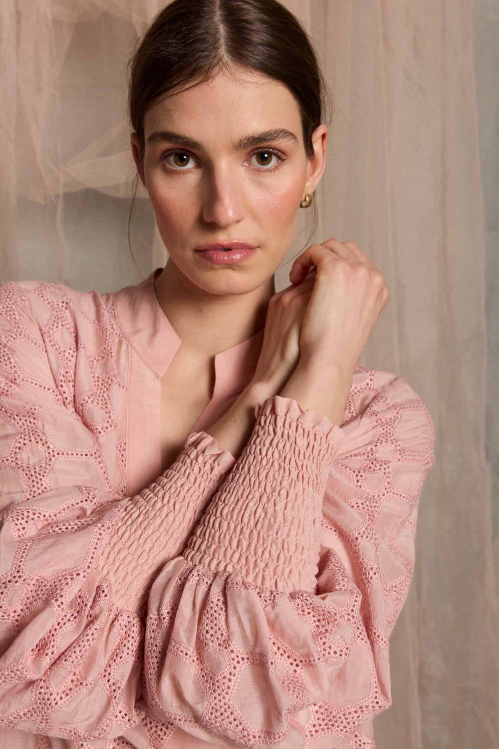 Rea Embroidered Shirred Cuff Blouse | Pink Quartz