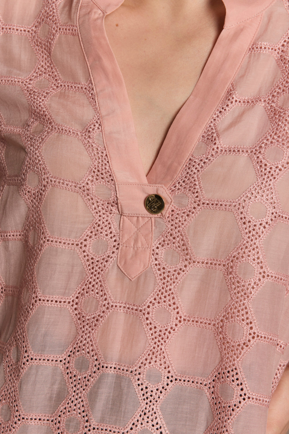 • V-neckline with gold button