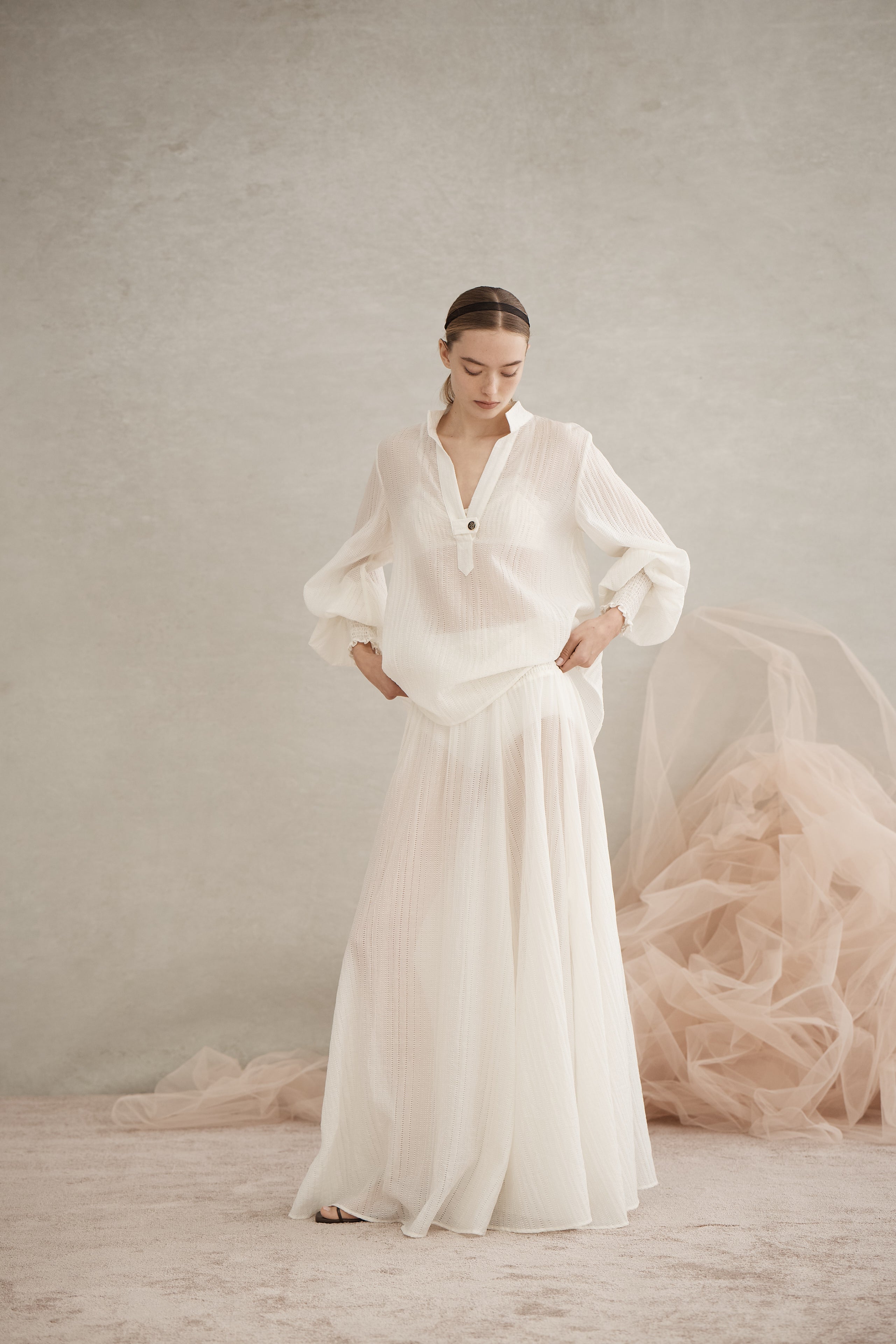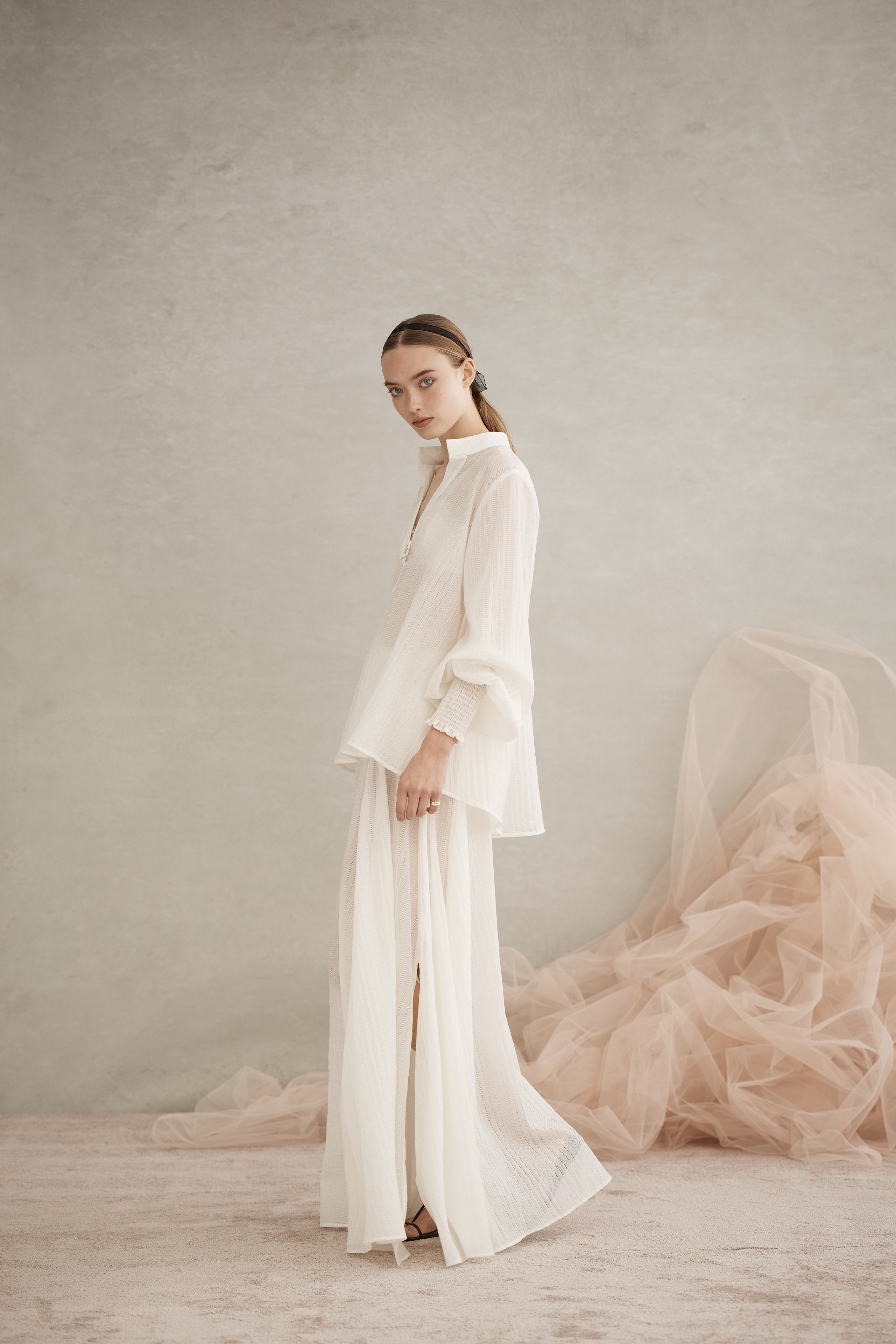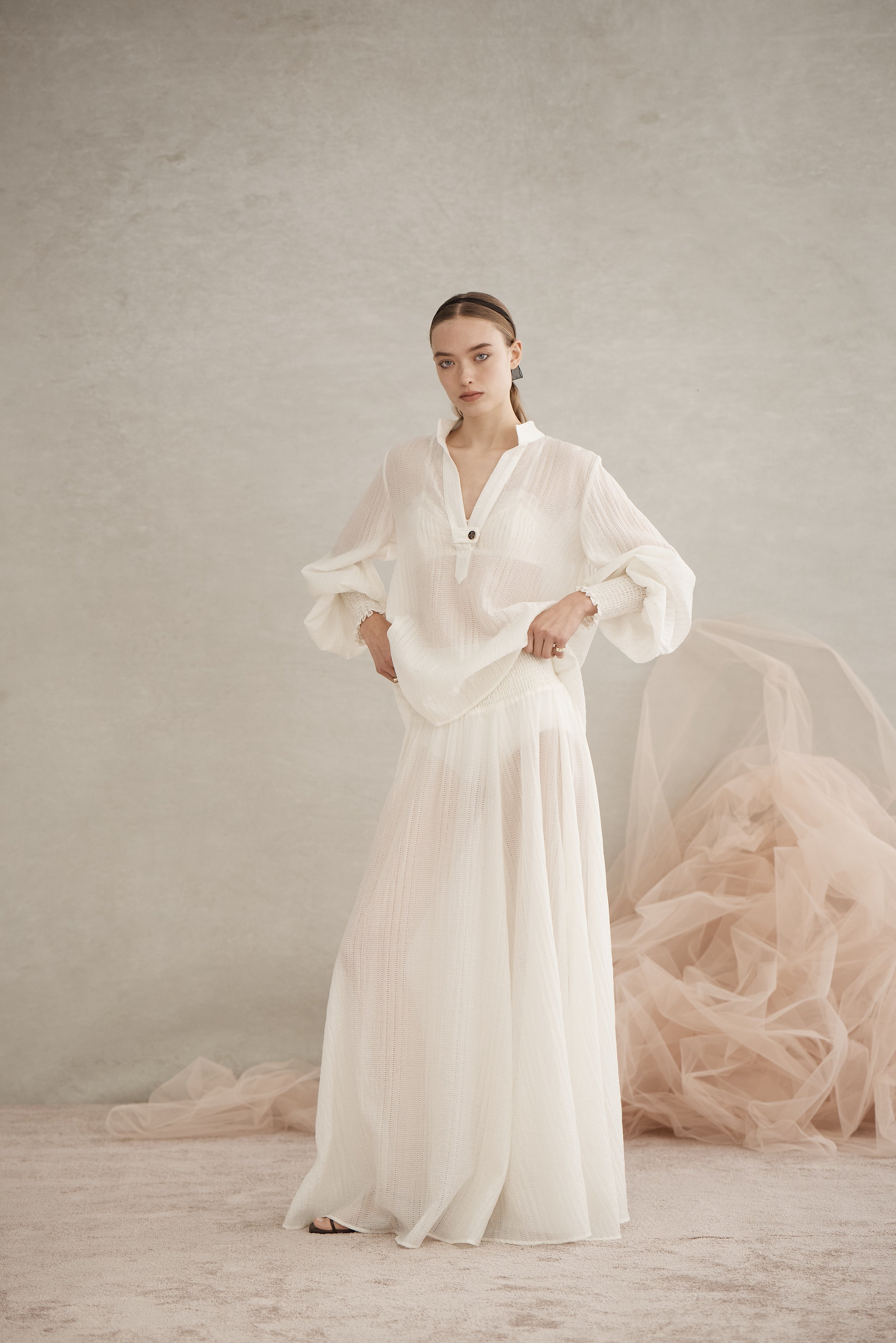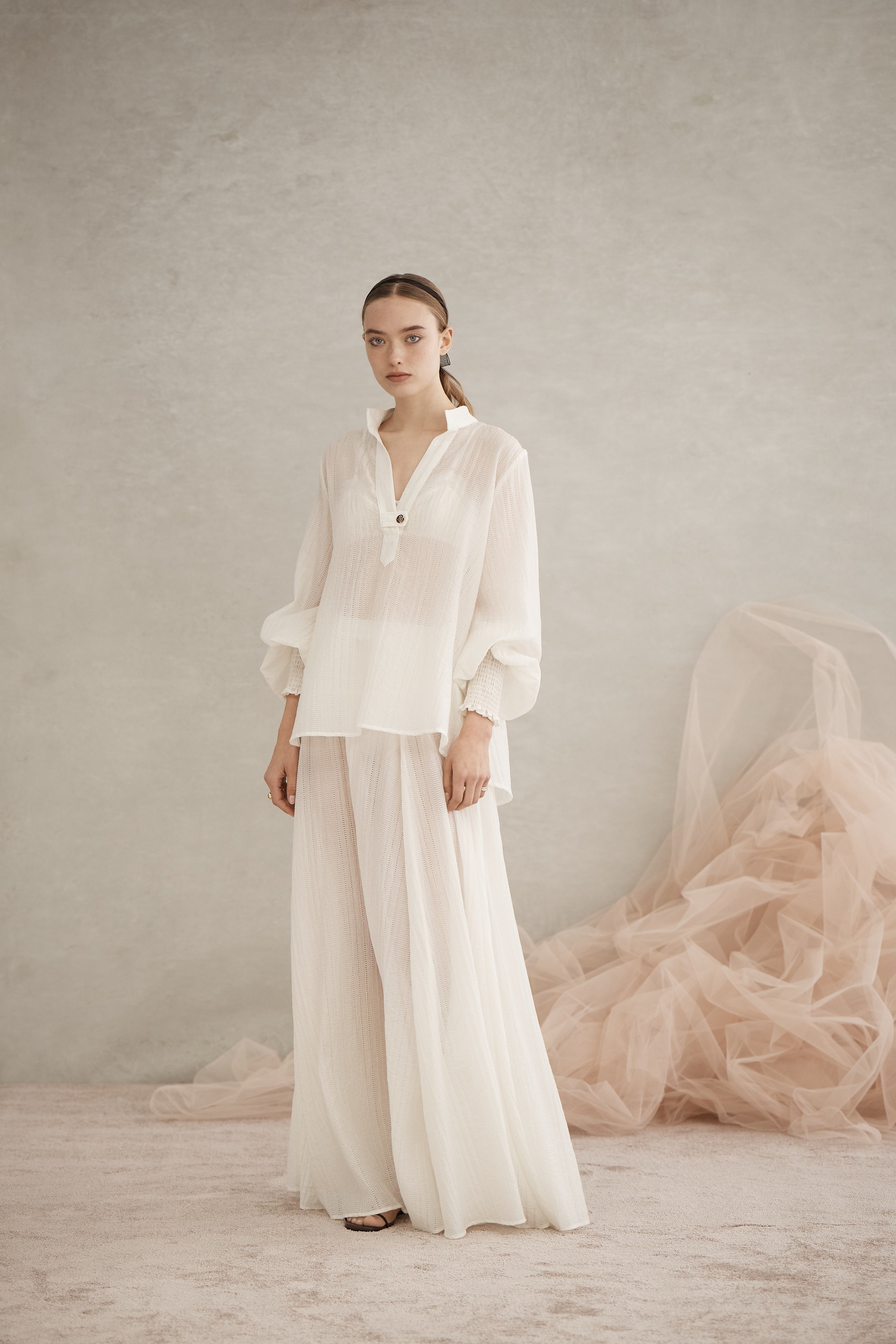 Crafted from a soft hemp fibre, the Rea Shirred Cuff Flax Blouse features a luxurious fine texture that enhances its soft shape and elegant design.